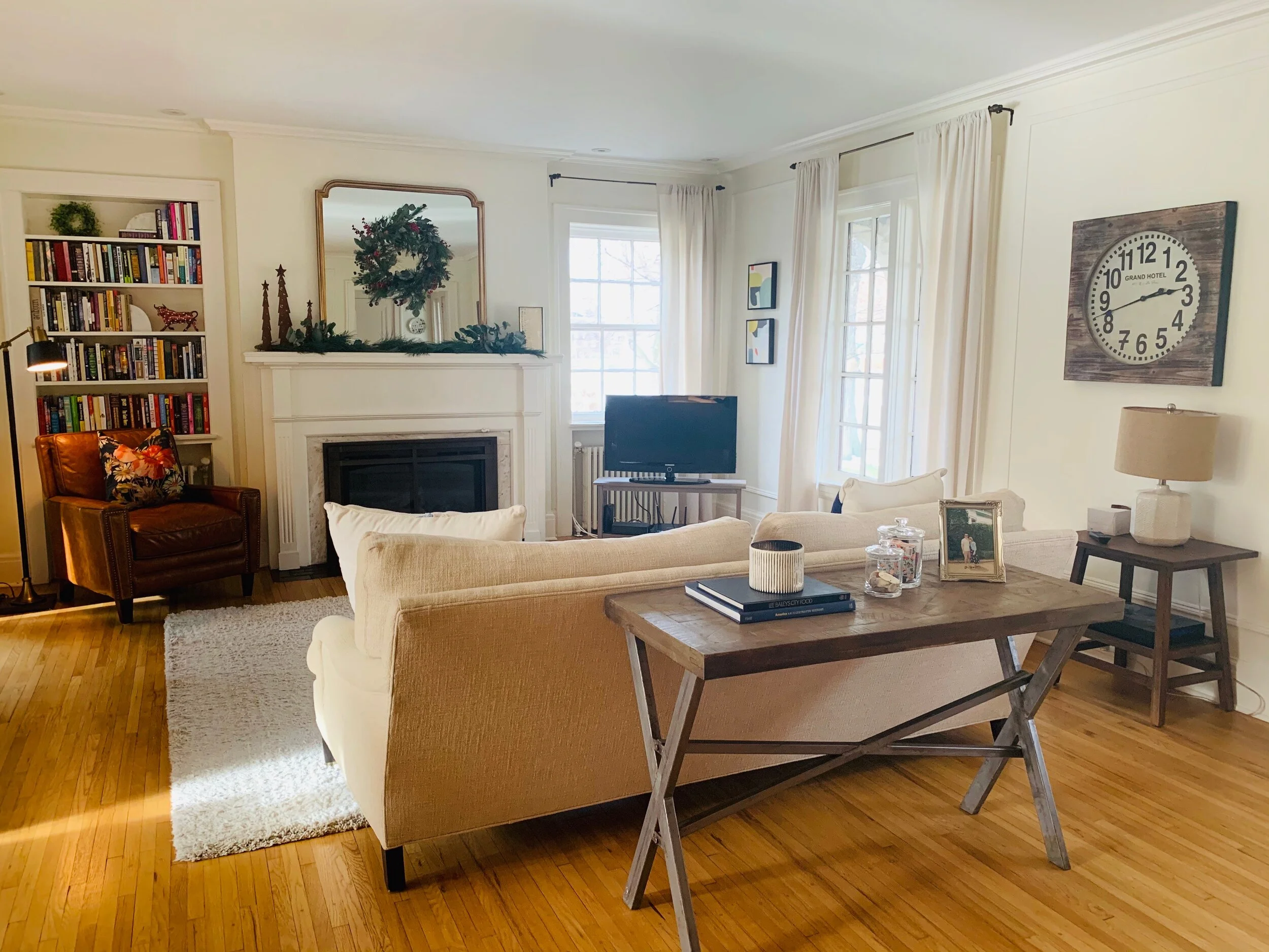 Much of this house is original, and in fact the bathrooms still retain the historic tile. There were some changes of course, and in fact, former owners added a cute knotty-pine paneled bedroom with en-suite bath over the garage to expand the space. The house lives on three floors since the basement, the “recreation/card room” as it was configured originally, is bright with sun from the glass block windows and is a space that Lindsey and Matthew have planned for future improvements.
