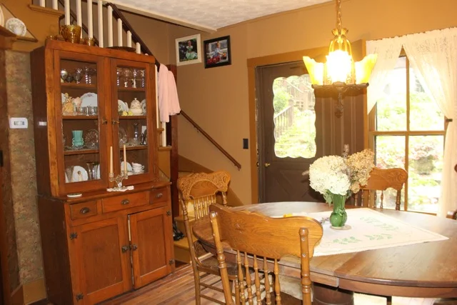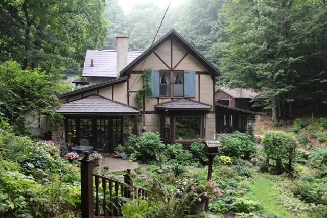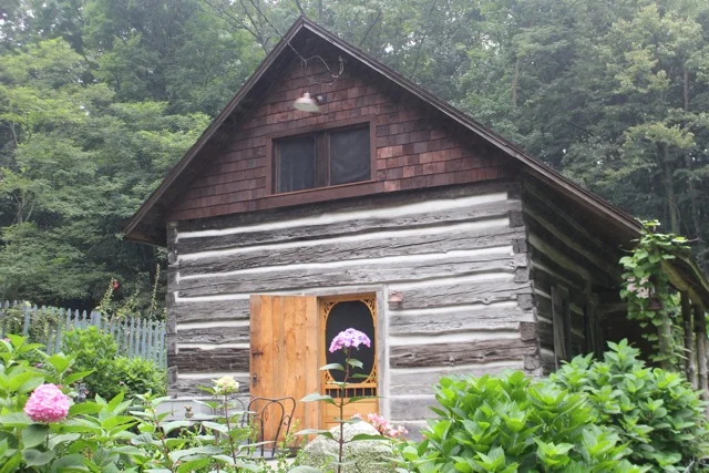 Beyond improving the house and cabin, Sharon enhanced the natural scenery with tiered landscaping, lovely gardens and outdoor patio groupings. The grounds were green and lush--almost like a quiet rain forest in the middle of the Michigan woods. The day we visited the hydrangeas were in full bloom adding a splash of color. Next to the garage, Bluhm had even added a quaint, decorative outhouse designed purposely for her daughter's outdoor wedding. Bluhm's two daughters Kate and Lissa now bring their children here to stay. The day we toured the grandchildren were visiting.