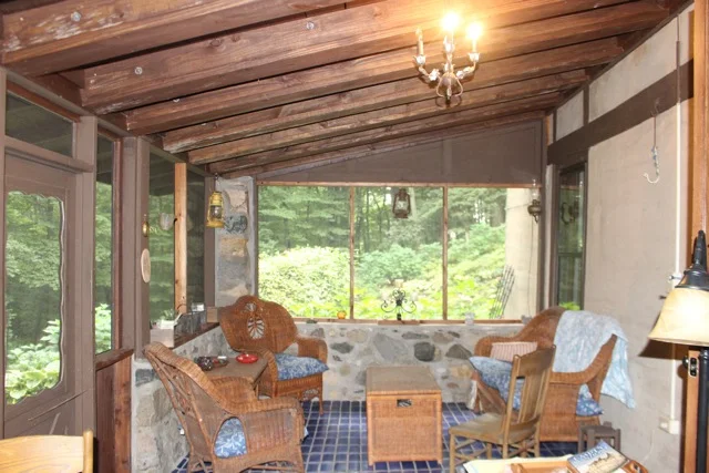Interior of the fieldstone porch where we sat comfortably and chatted some more...